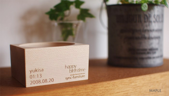 happy birthtime[ハッピーバースタイム]は天然木を使用した小さな置時計です。
