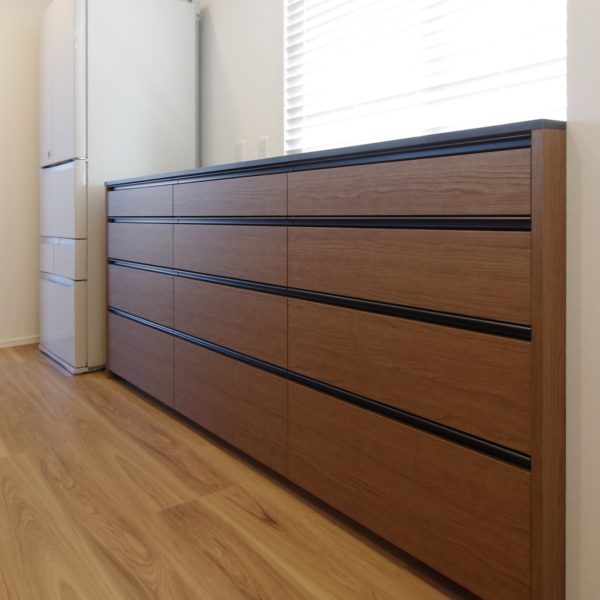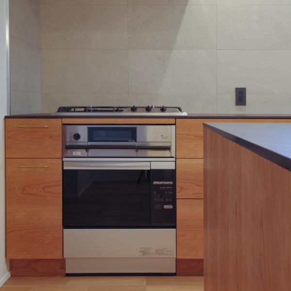 表面材は希少なローズウッドで大人な雰囲気のキッチンになりました。