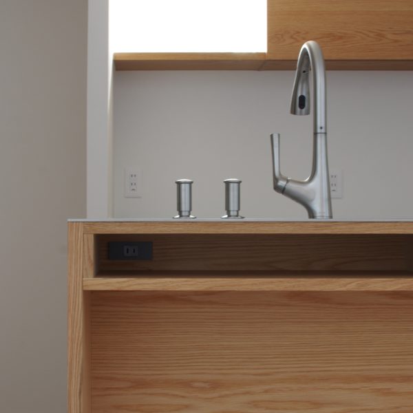 家電や水切りかごなどを、使うときだけ手前に引き出せる便利なスペース。